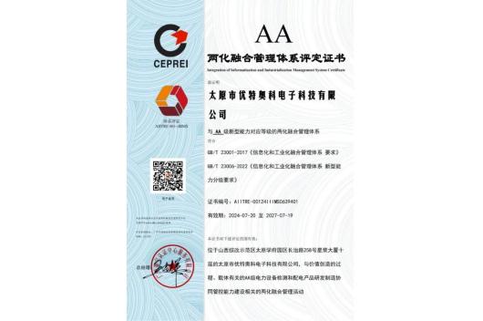 近日,我公司正式獲得兩化融合管理體系AA級評定證書,標志著在信息化與工業(yè)化融合方面取得顯著進展。此次評定嚴格按照國家標準,歷經(jīng)多個環(huán)節(jié),最終順利達標。