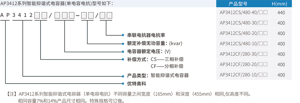 AP3412系列智能抑諧式電容器是由智能測控單元、同步零投切開關(guān)、智能保護(hù)單元、組網(wǎng)單元、顯示單元、一臺(tái)/兩臺(tái)(△型)或一臺(tái)(Y型)低壓自愈式電力電容器、高品質(zhì)電抗器組成的智能無功補(bǔ)償系統(tǒng)。產(chǎn)品具有模塊化、標(biāo)準(zhǔn)化、免維護(hù)等特性,具有零投切、分級補(bǔ)償、過電流/過電壓/過溫度保護(hù)、故障自診斷、測量、通信、信號、聯(lián)機(jī)等功能。AP系列智能抑諧式電容器應(yīng)用于電網(wǎng)諧波含量嚴(yán)重的低壓電力系統(tǒng)中,能夠安全可靠運(yùn)行,不會(huì)產(chǎn)生諧波,對諧波無放大作用。有效的提高了系統(tǒng)功率因數(shù),降低線損,提高電網(wǎng)電能質(zhì)量。 AP3412系列智能動(dòng)態(tài)抑諧式電容器是由智能測控單元、大功率晶閘管投切開關(guān)、智能保護(hù)單元、組網(wǎng)單元、顯示單元、低壓自愈式電力電容器、高品質(zhì)電抗器、放電及風(fēng)冷單元組成的智能無功補(bǔ)償系統(tǒng)。產(chǎn)品具有模塊化、標(biāo)準(zhǔn)化、免維護(hù)等特性,具有快速零投切、分級補(bǔ)償、過電流 / 過電壓 / 過溫度保護(hù)、故障自診斷、測量、通信、信號、聯(lián)機(jī)等功能。